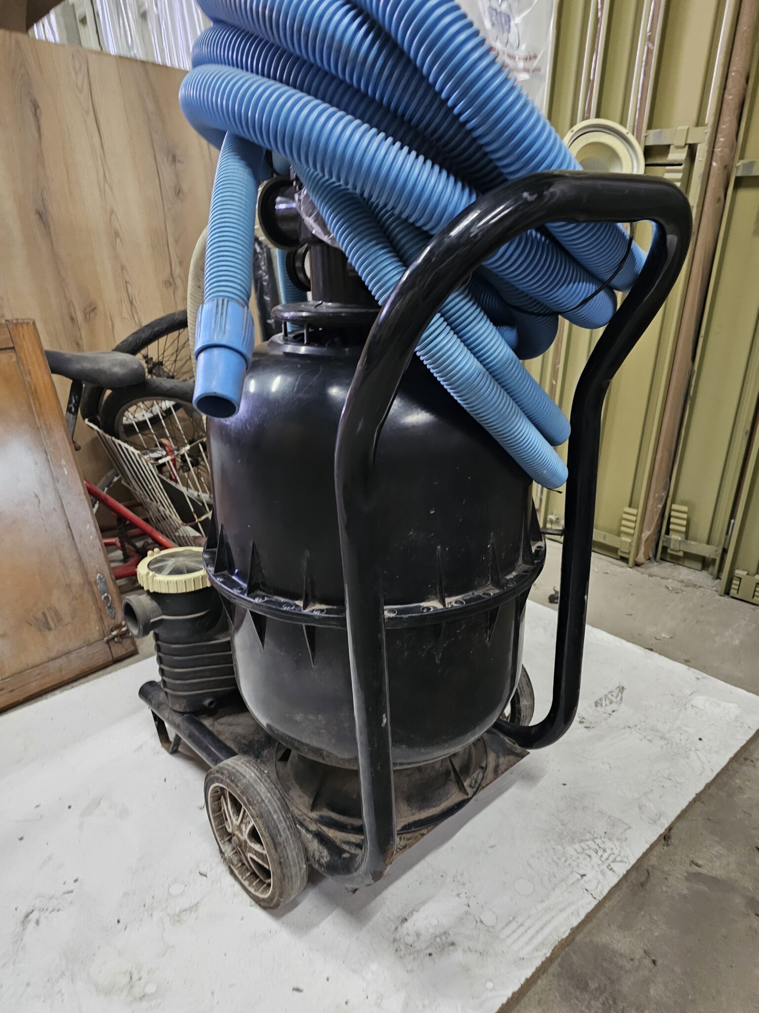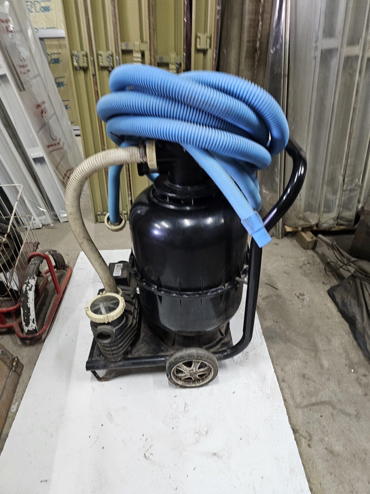 Este equipo filtrante marca Fluvial esta compuesto de un filtro linea plata 2, una bomba plata 1/2HP los cuales estan sujetos a un carrito para su fácil traslado.