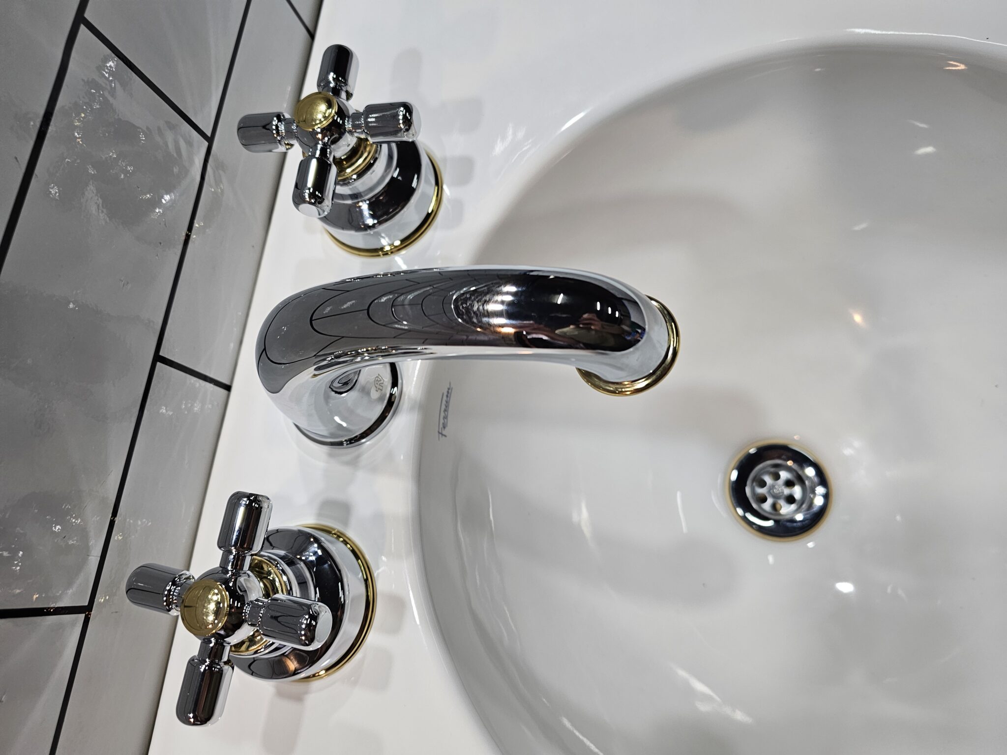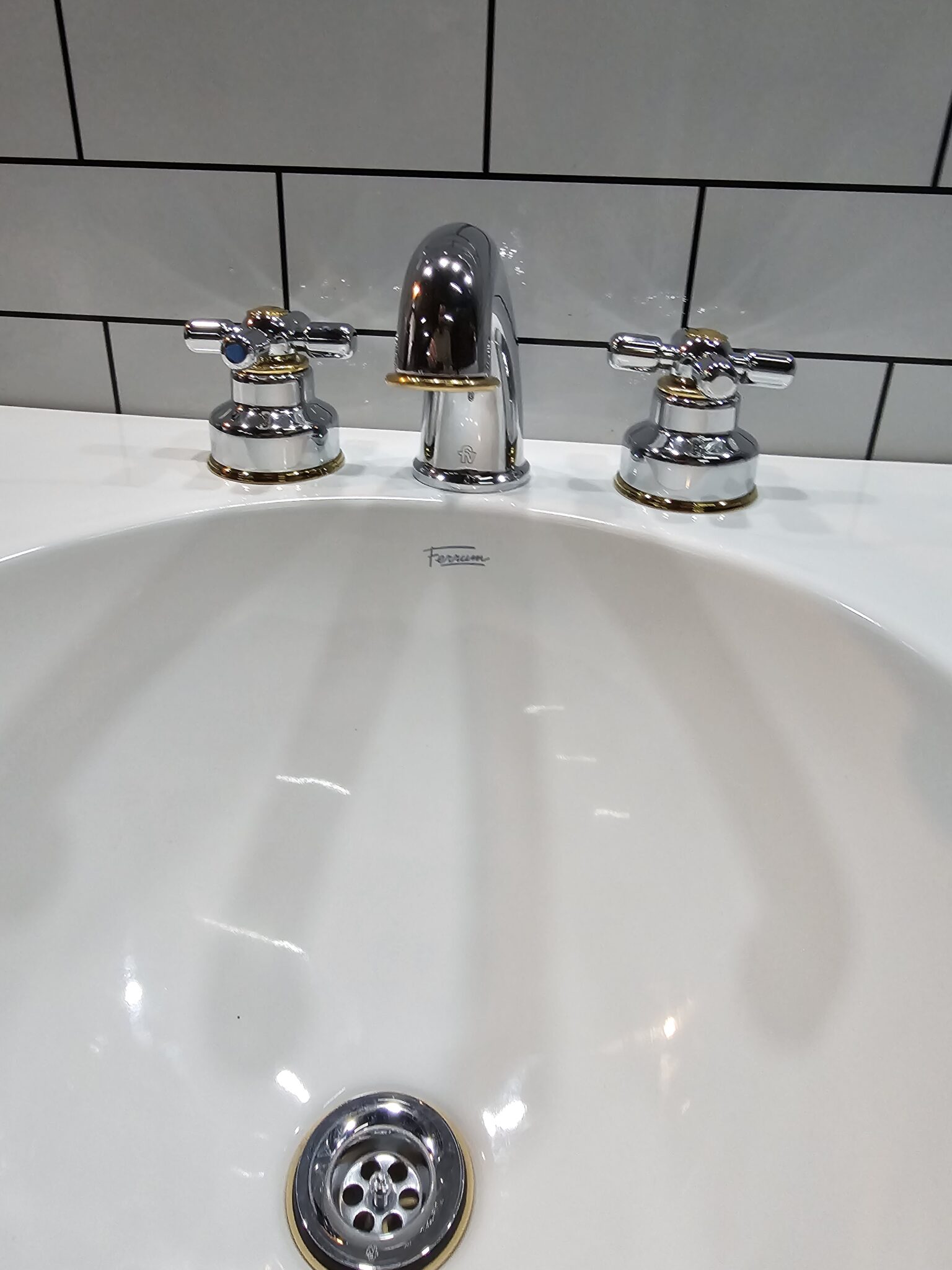 La grifería de lavatorio FV Gran Gala 207/72 en cromo oro, también conocida como cromo ORO, es un modelo específico de grifería de lavatorio de la línea Gran Gala de FV,
